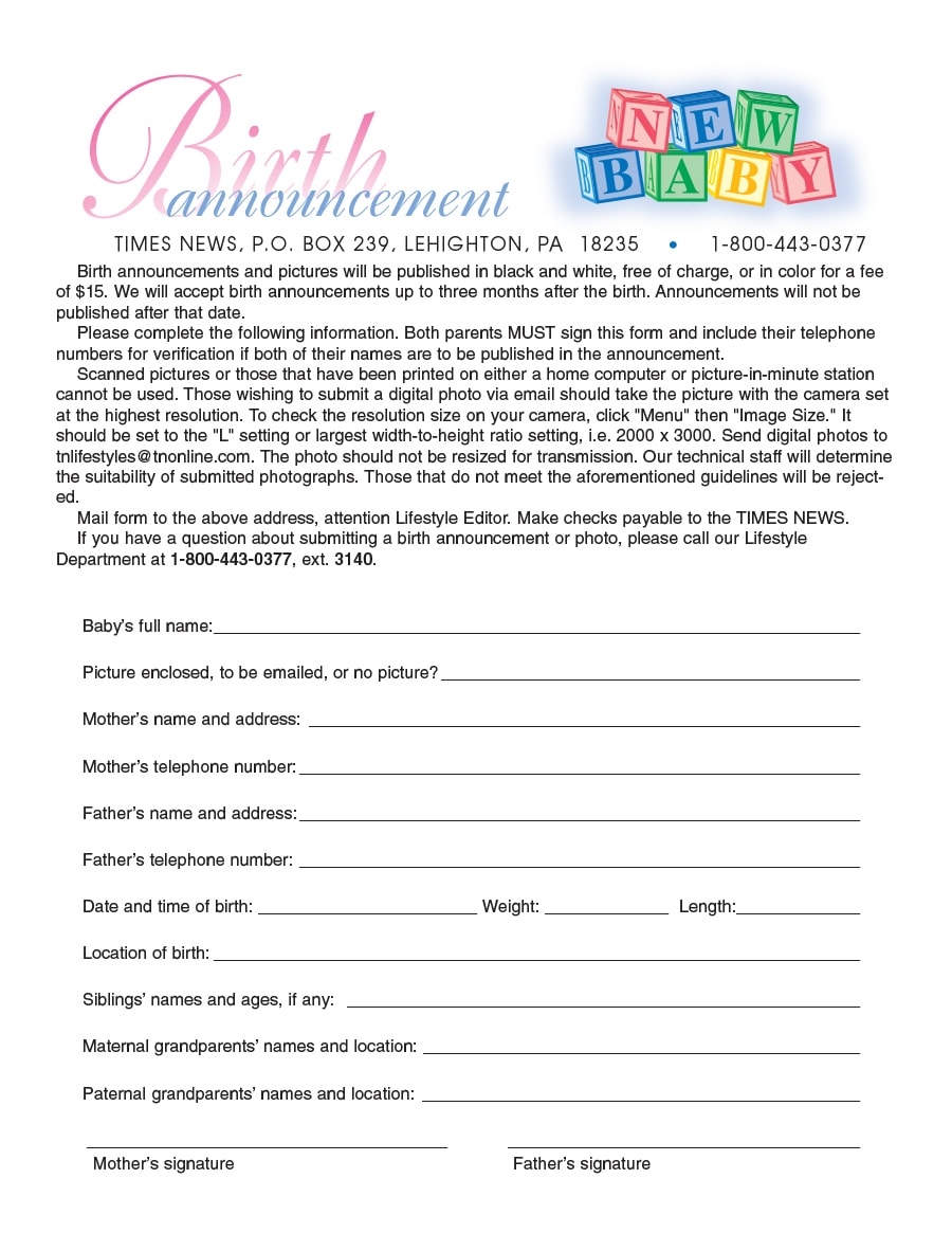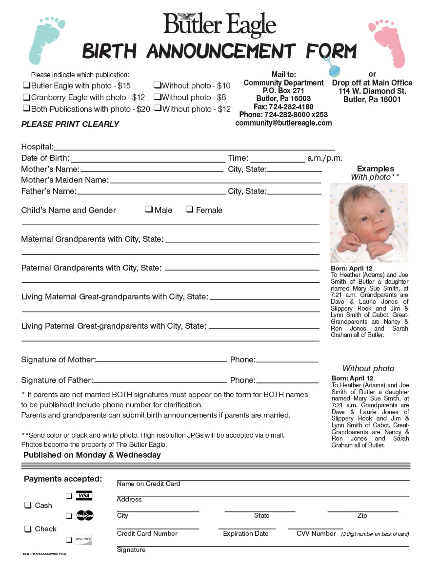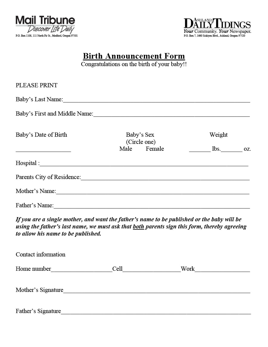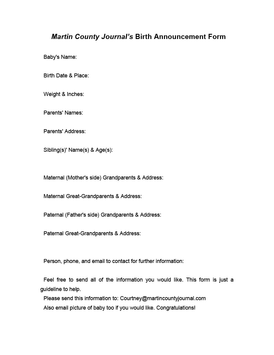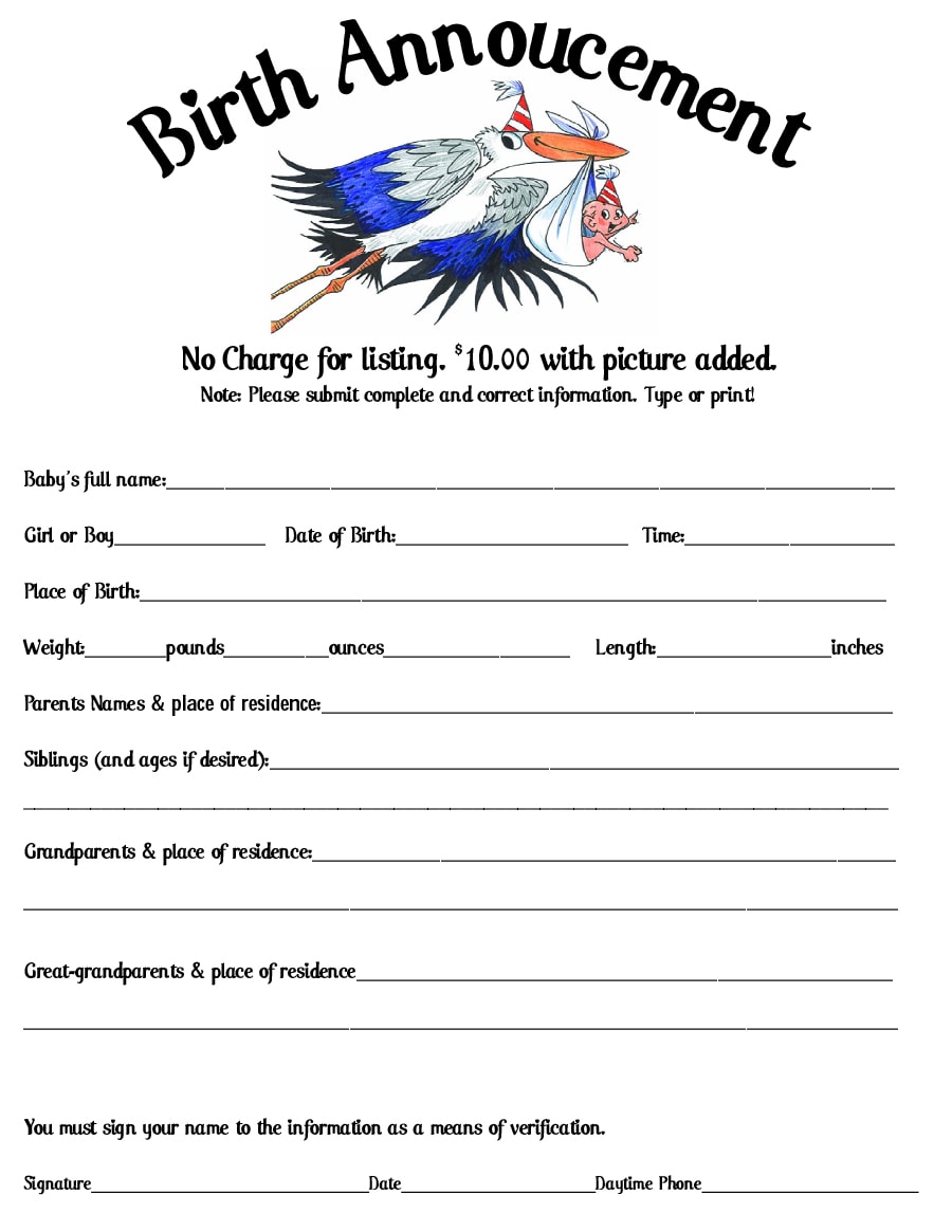 • Add Details: Include essential information such as the baby’s name, birth date, weight, length, and any other details you wish to share.