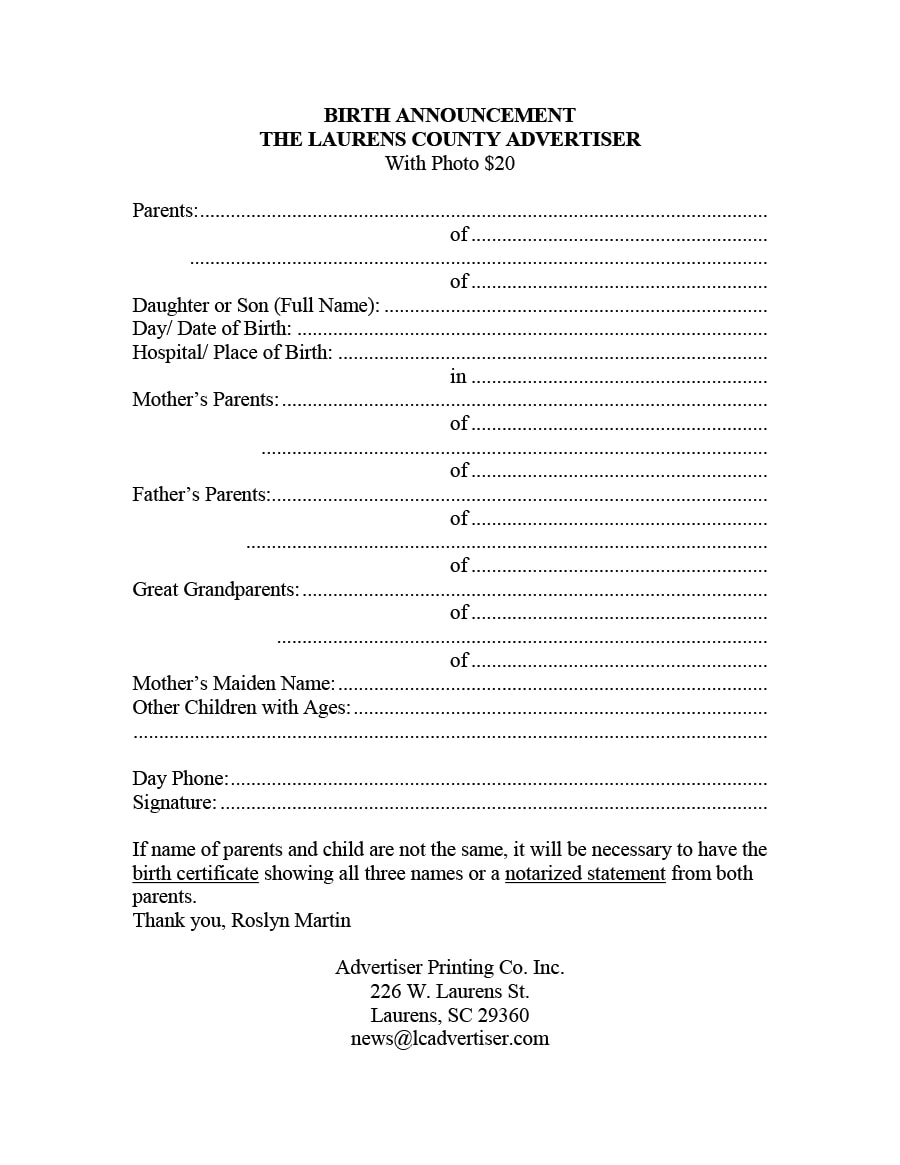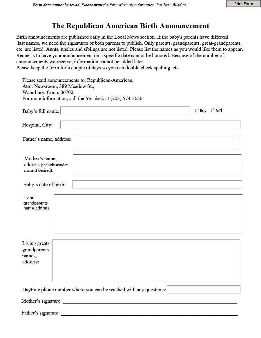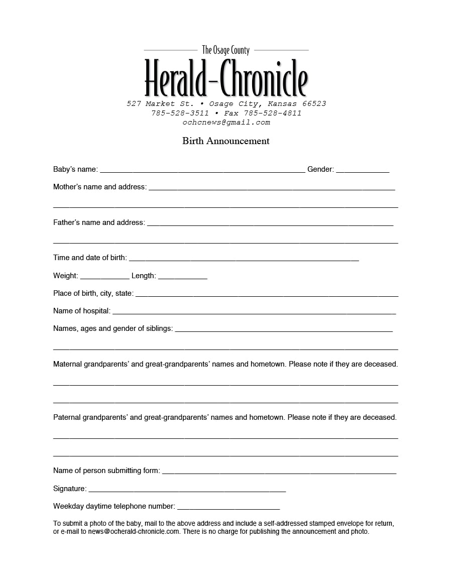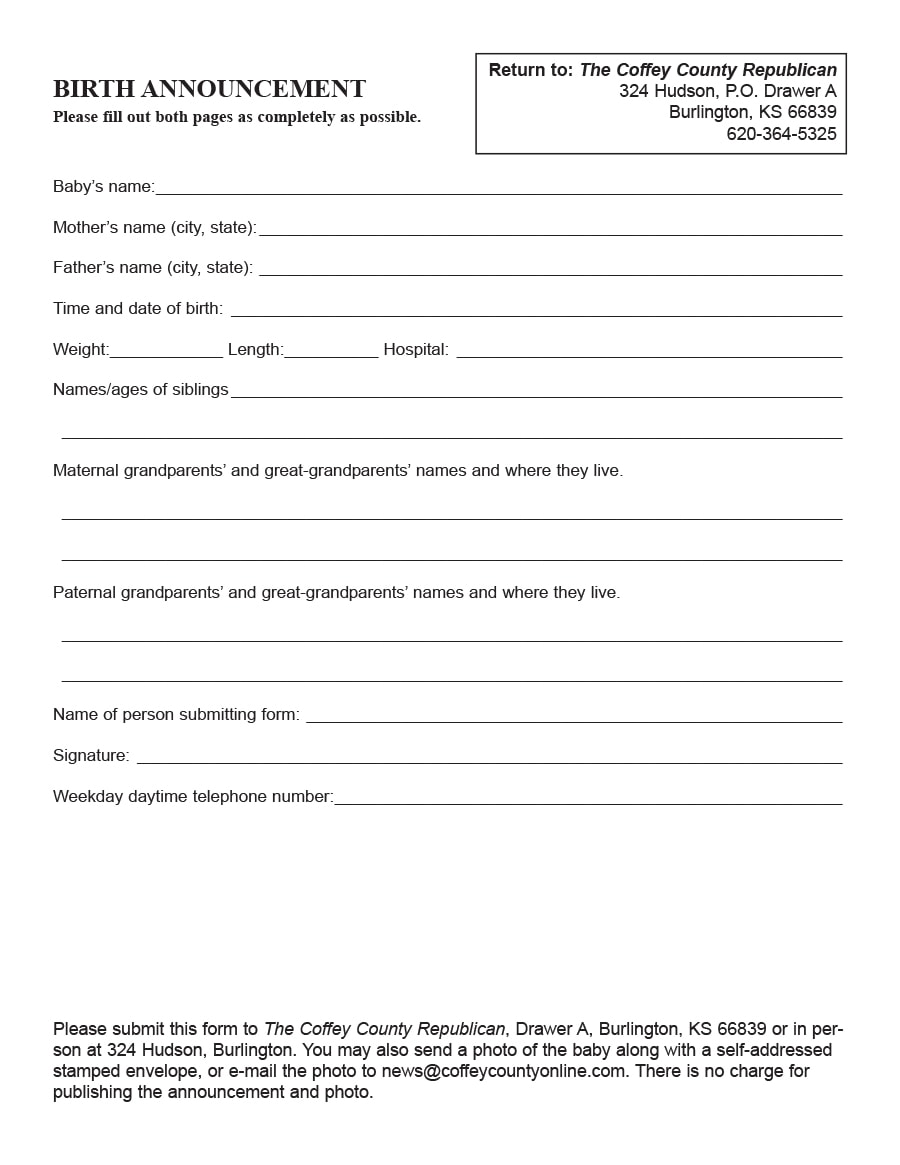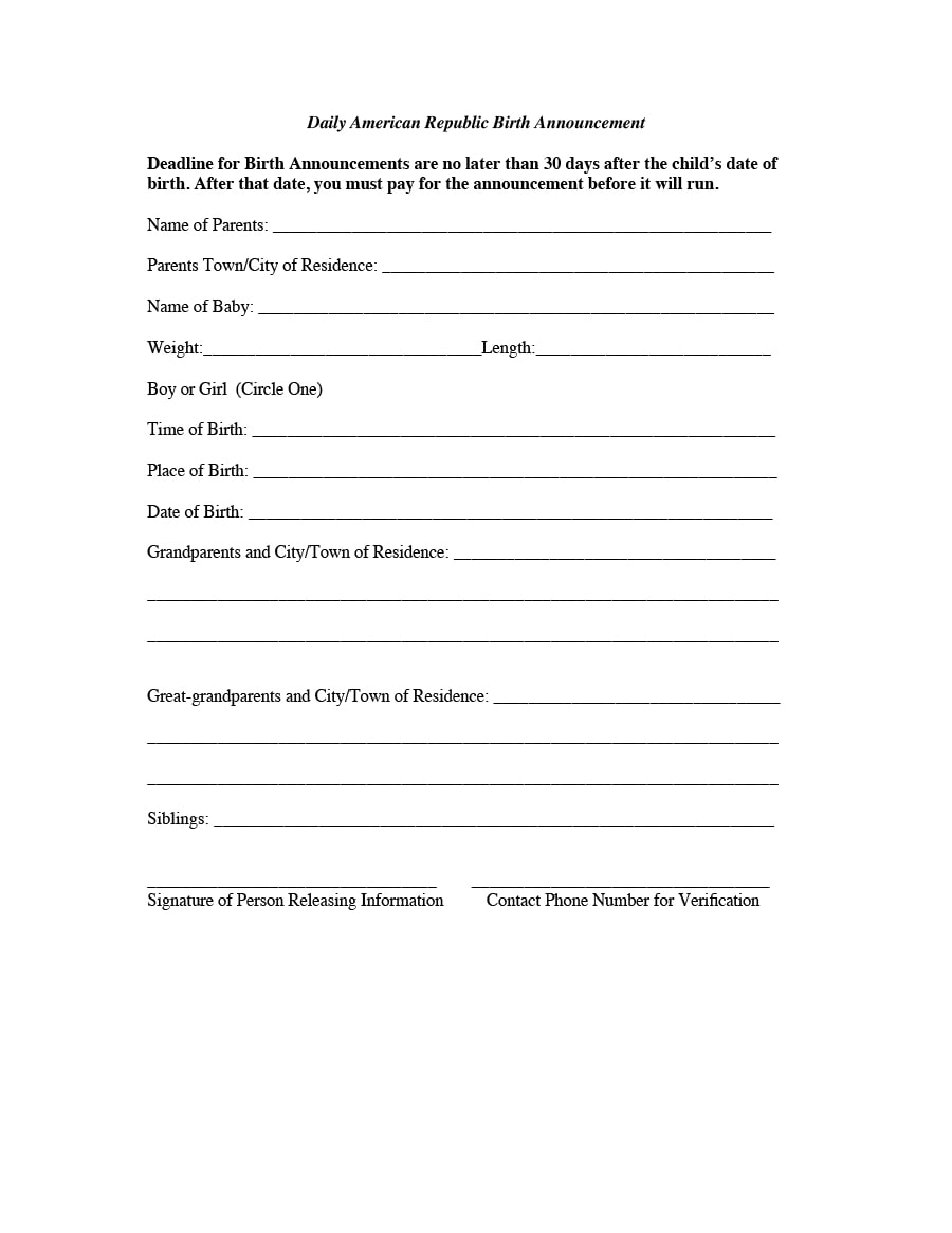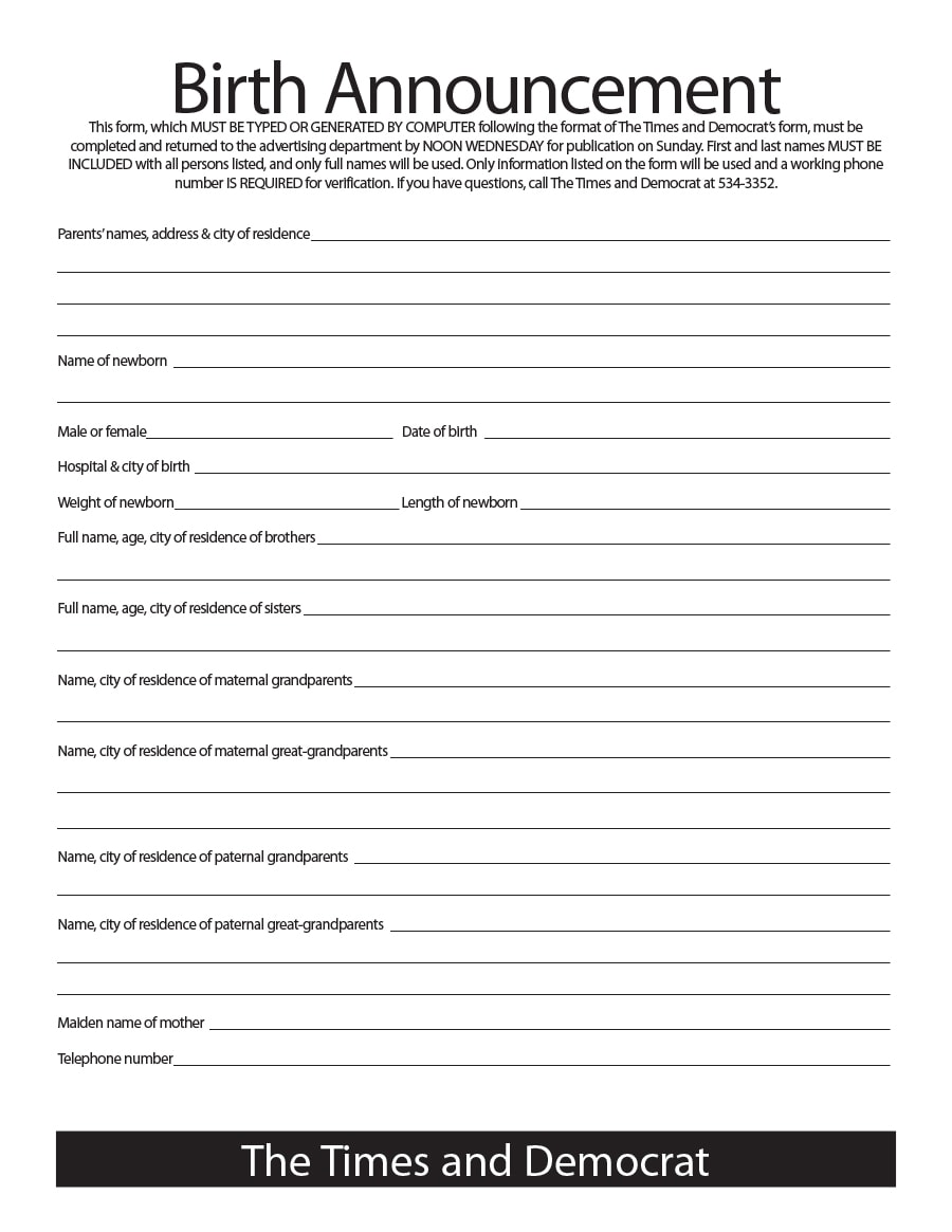 • Add Details: Include essential information such as the baby’s name, birth date, weight, length, and any other details you wish to share.