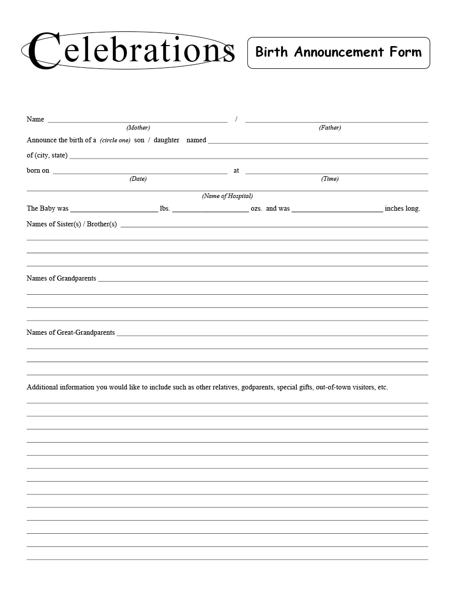 • Celebration: Birth announcements allow parents to celebrate the arrival of their baby and share the excitement with their loved ones.
