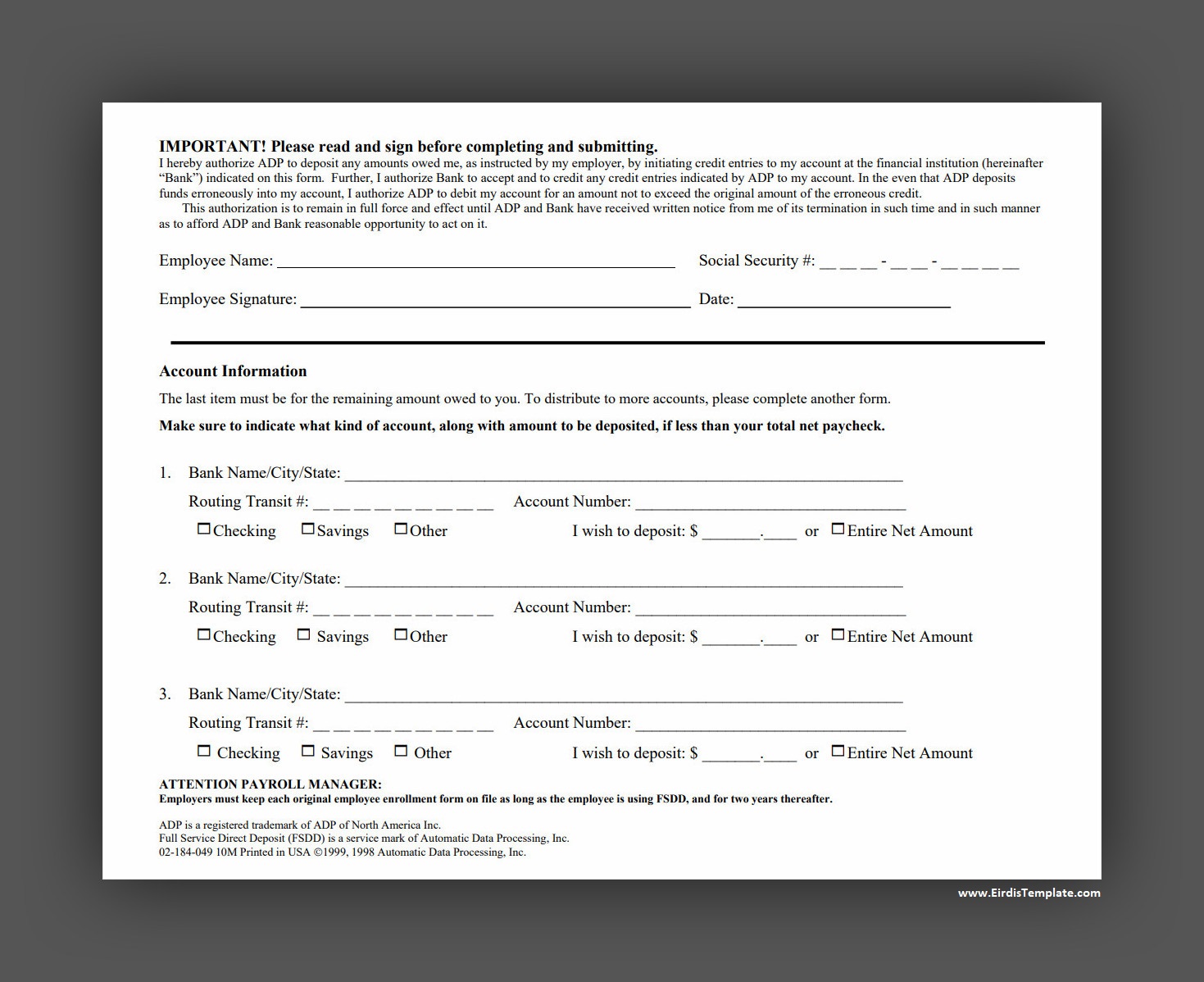 Printable Direct Deposit Enrollment Form