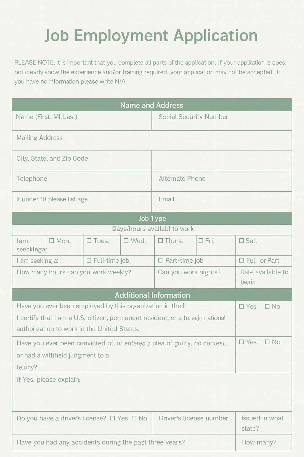 Download the Job Employment Application Template today to streamline your hiring process and gather complete, accurate applicant information.