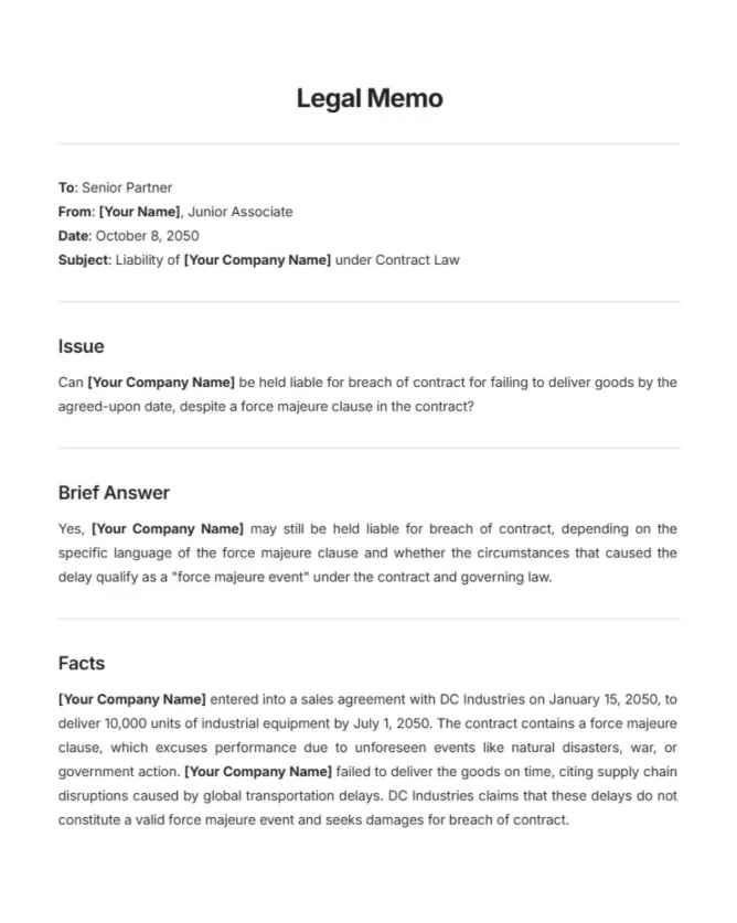 - Client Communication: Legal memos are often shared with clients to explain legal issues clearly and understandably.