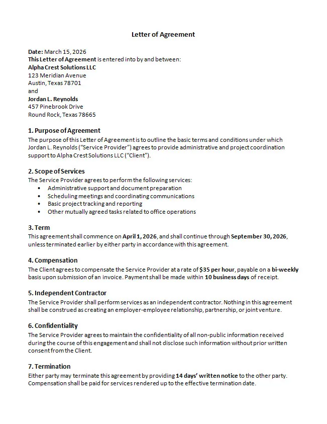 While not as complex as a full-fledged contract, a letter of agreement still holds legal weight and can be used for various types of agreements.
