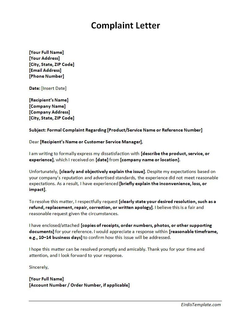 Download our Letter of Complaint Template today to address issues confidently and professionally.