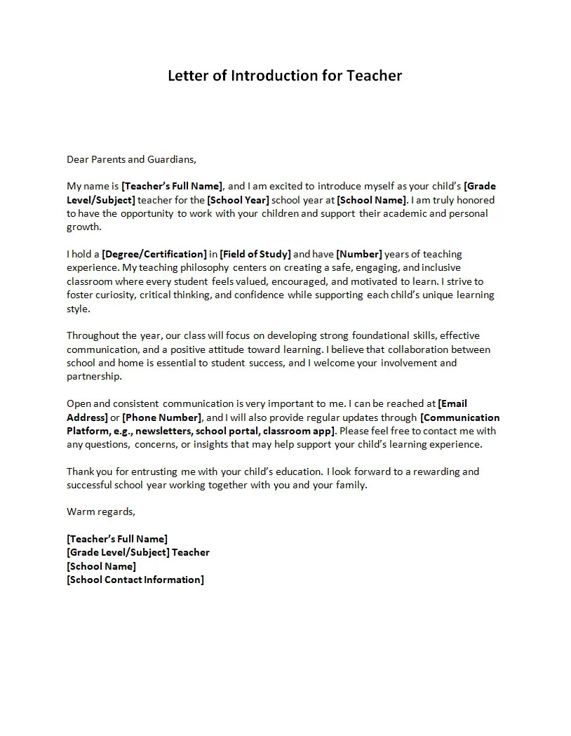 - Letter of Introduction for Teacher Template - December 25, 2025