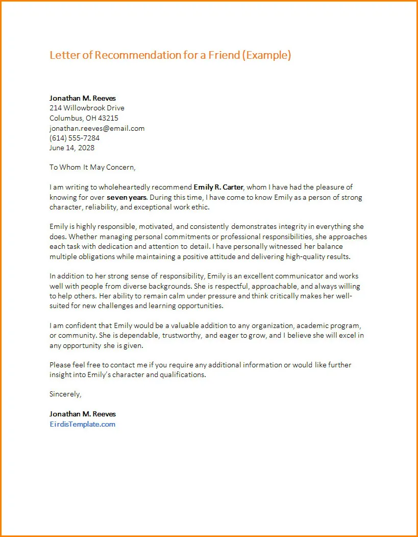 - Letter of Recommendation for a Friend Template - January 2, 2026