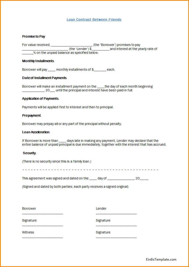 Loan Contract Template Between Friends – DOWNLOAD
