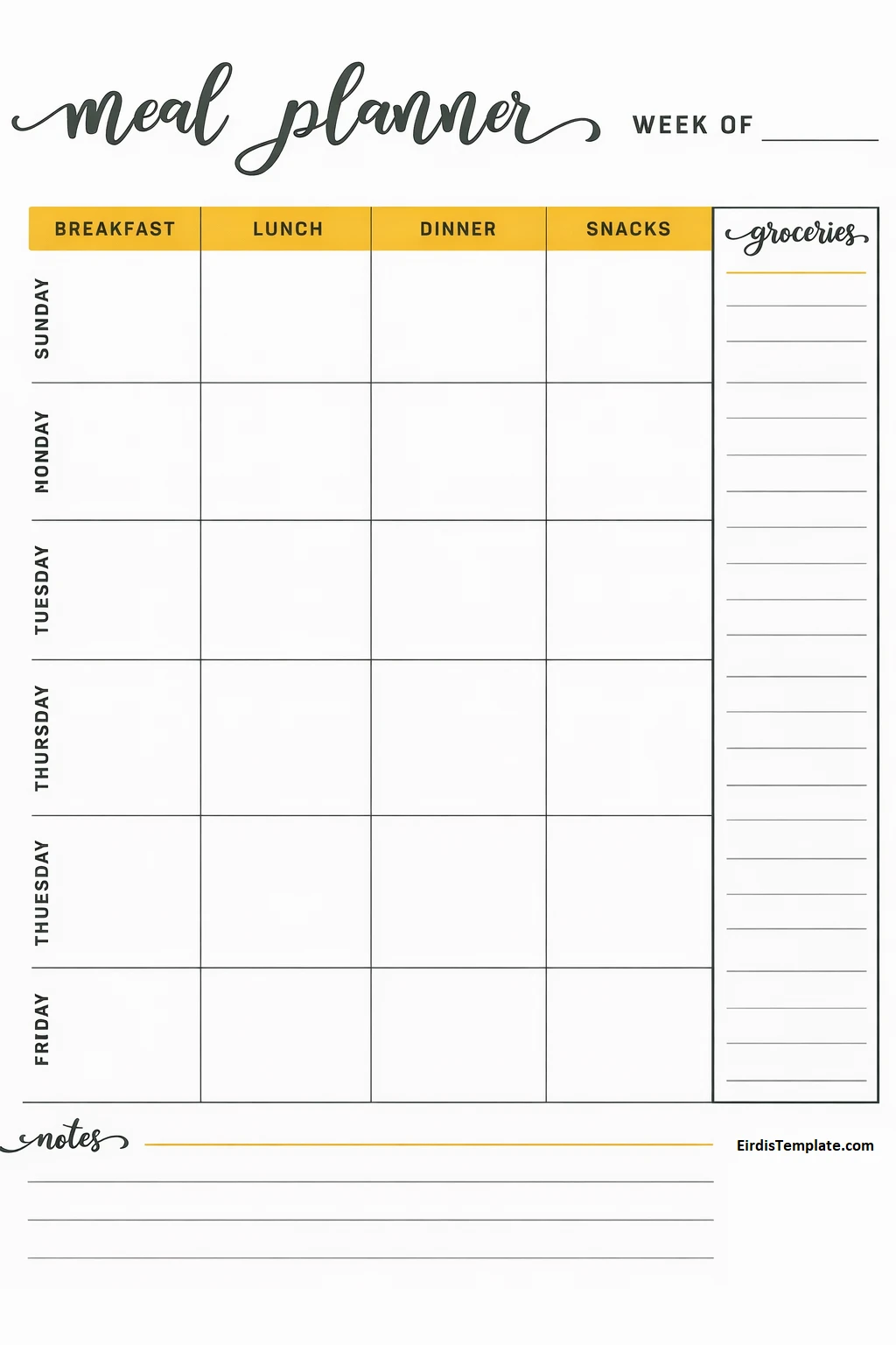 Simple Blank Meal Plan Template