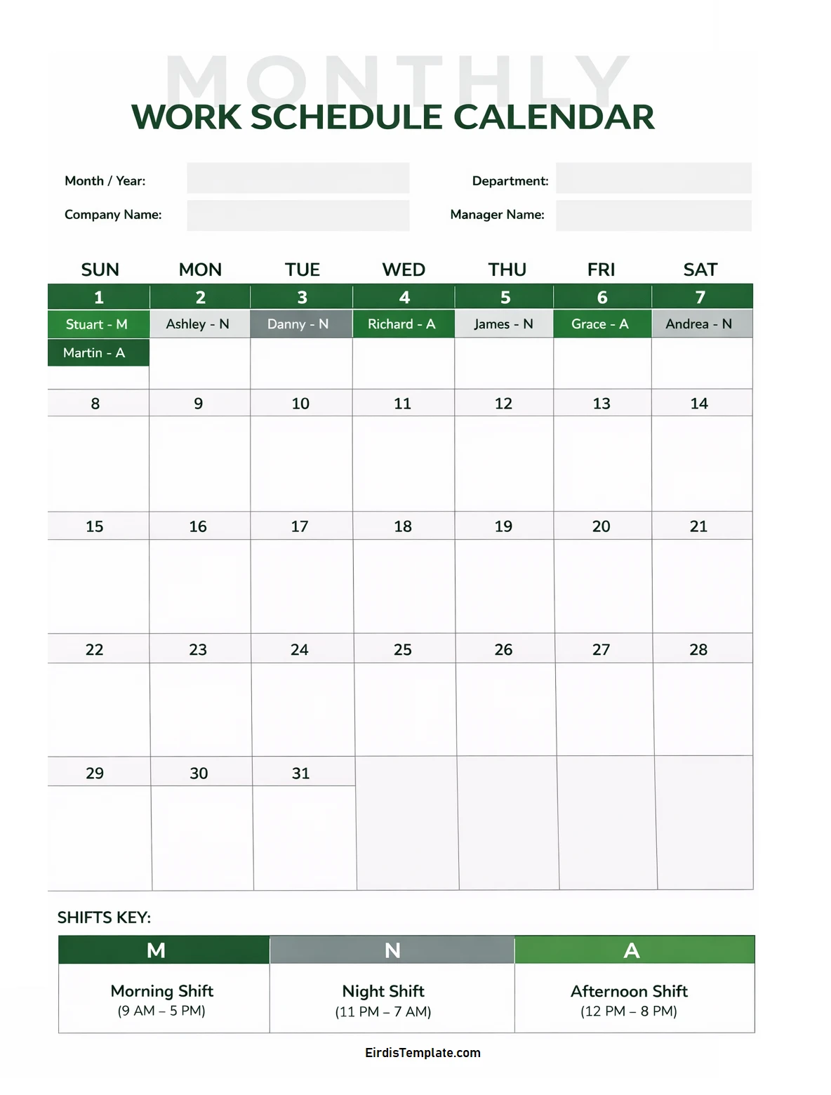 A well-structured monthly schedule takes into account factors such as business needs, employee availability, and workload distribution to ensure optimal staffing levels and efficiency.
