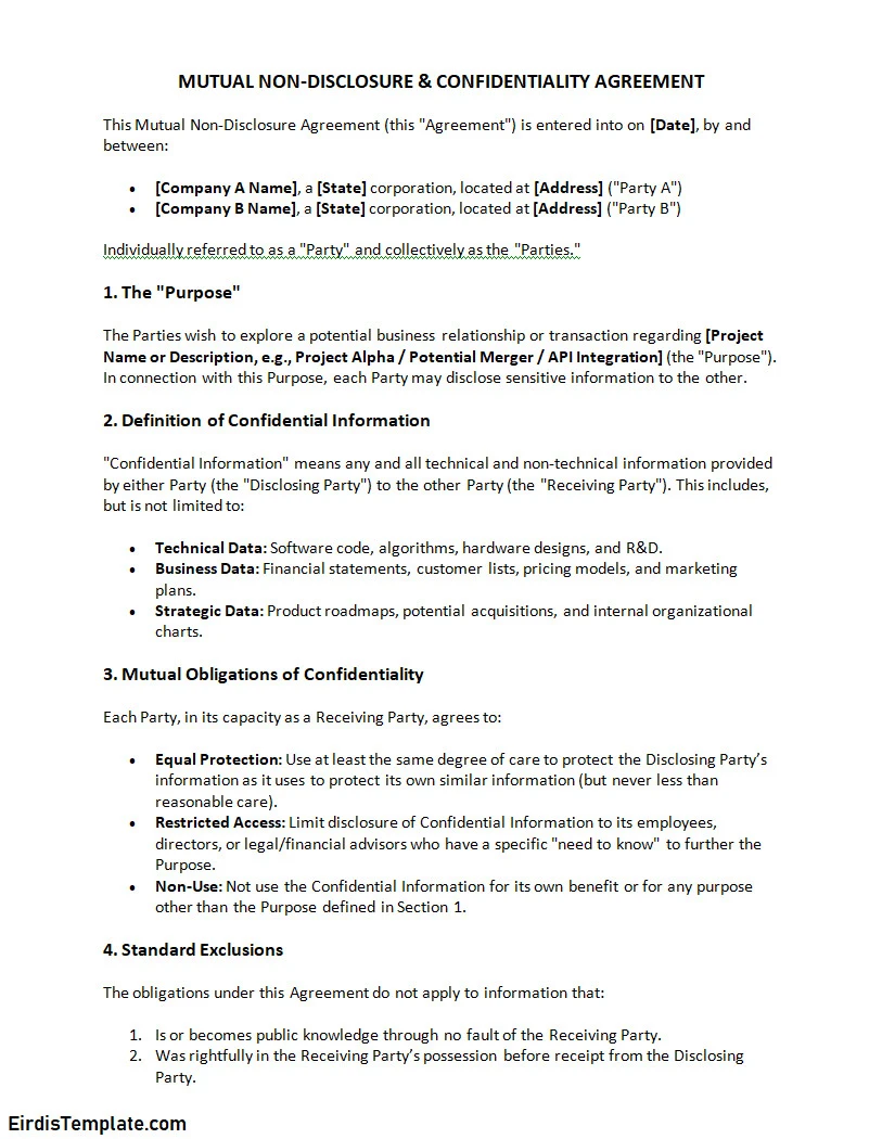 Mutual Confidentiality Agreement Template – Word