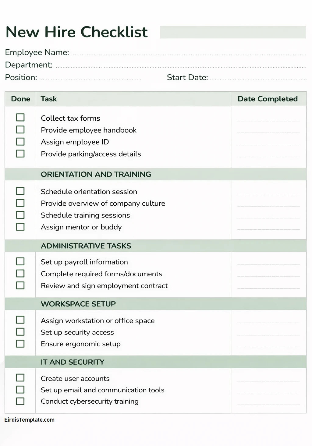 A new hire checklist is a document that outlines all the tasks, paperwork, and training that need to be completed when a new employee joins an organization. It serves as a roadmap for HR professionals, managers, and new hires to ensure that nothing falls through the cracks during the onboarding process.