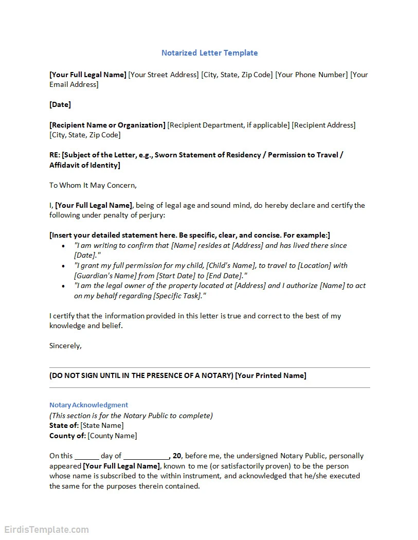 Notarized Letter Template – DOWNLOAD