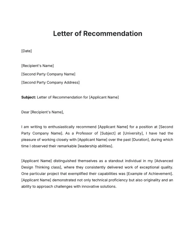 - Professional Letter of Recommendation Template - April 20, 2026