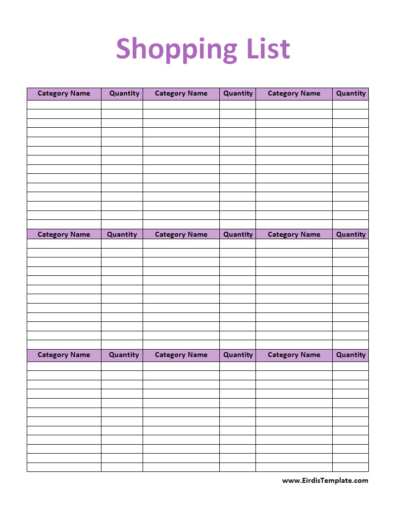 Free Shopping List Template